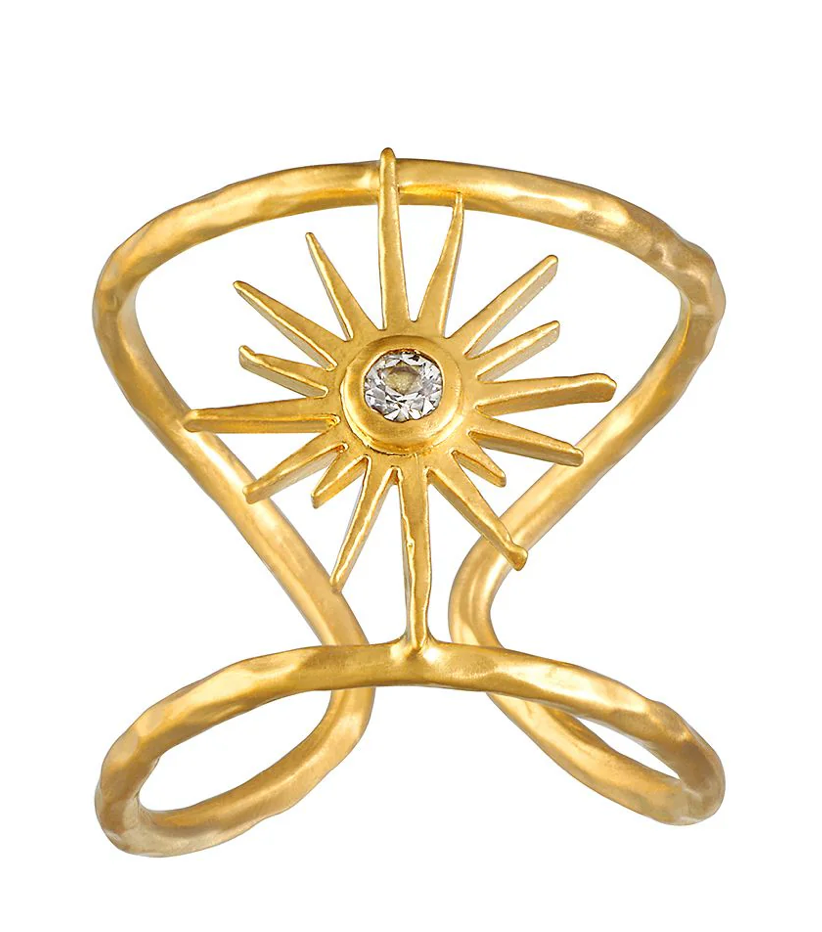 Dieser wunderschöne handgefertigte Ring besteht aus vergoldetem Messing und ist mit einem Rosenquarz-Edelstein verziert. Das Innenmaß des verstellbaren Rings beträgt 16 Millimeter.