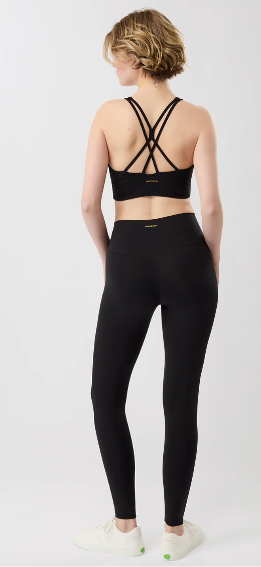 Double-layer bra/croptop in GOTS certified elastic organic cotton with a beautiful back detail of crossed strings and soft ruching at the front at the bust.