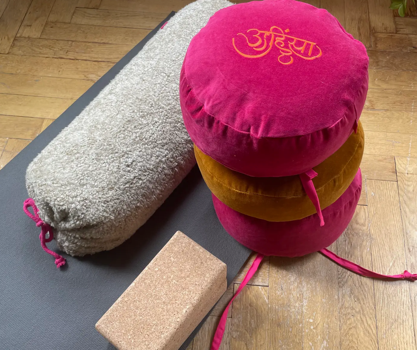 The extra flat ECO meditation cushion has a removable cover made of 100% organic cotton as well as an entrance filled with organic spelled shells. The cover can be machine washed at 30°C. If you want to adjust the height of your cushion to your needs, you can use the zipper to remove or add padding.