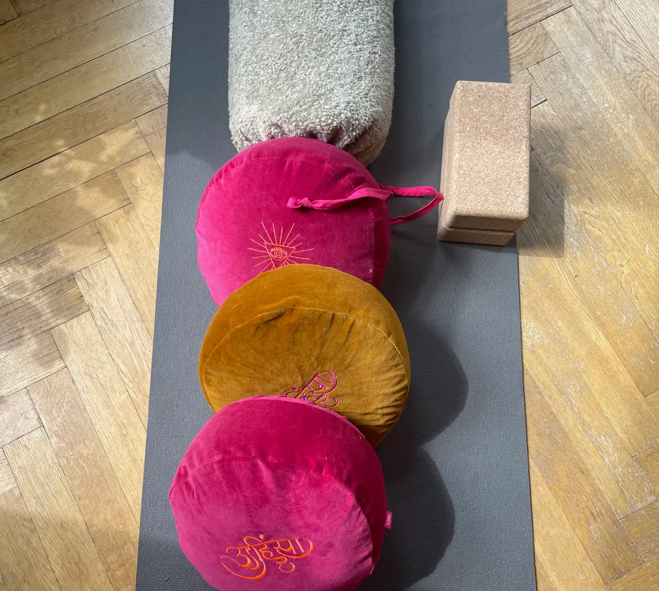Extra flat organic cotton meditation cushion with spelled filling. It is suitable for anyone who prefers a flatter cushion for meditation. We can recommend it for seated meditation with crossed legs, such as the Easy Pose (Sukhasana), the Accomplished Pose (Suddhasana) or the half-lotus.