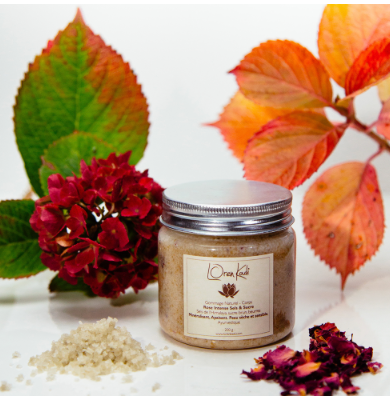 Benefits of this natural Ayurvedic scrub: Soft texture to apply for this refined scrub. The gold leaves macerated with the plants bring their minerality, the Lotus rich in phenols protects against the signs of aging. Aloe Vera, Chamomile and Sandalwood soothe redness. Rose, Ashwagandha and Tulsi invigorate. This rich exfoliant with finely crushed rice bran restores the skin's natural radiance and perfumes it with a light veil of sandalwood. Also suitable for men.
