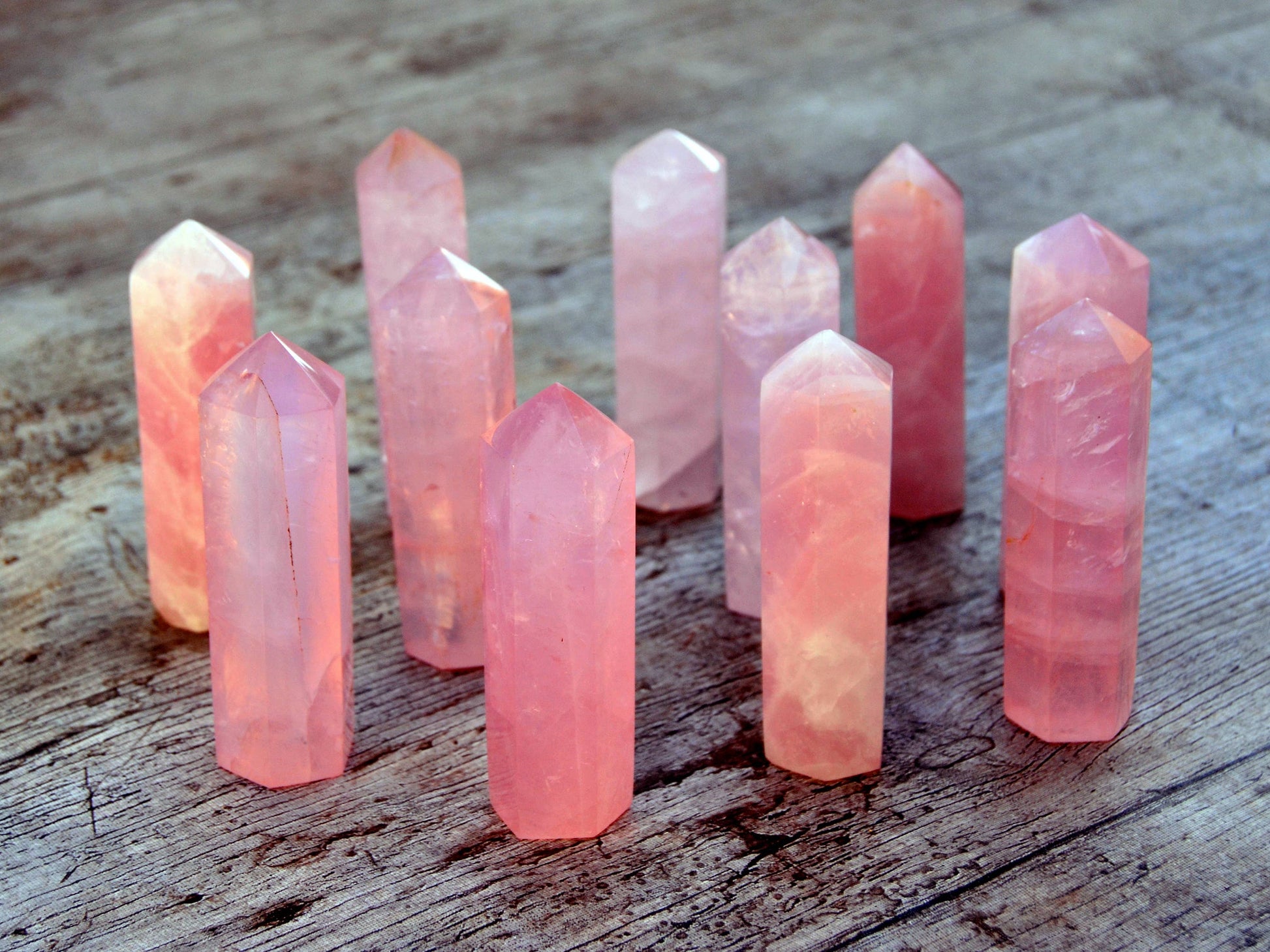 You get a rose quartz tower very similar to the one in the image above, chosen at random. Please expect slight variations in color and transparency as there are unique variations for each stone. Note that all crystals are natural, so sometimes small imperfections may appear.
