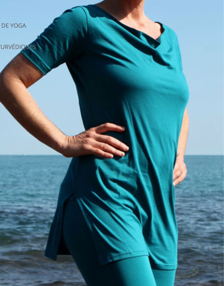 Sohang pants combine absolute comfort with an elegant and original design. It is ideal for indoor use, yoga and pranayama sessions, sports and other daily activities. The skirt around the hips highlights the feminine curves. An elastic waistband gently supports the pants without tightening the belly and provides maximum comfort. The design of these pants is completed with gaiters that gently wrap your feet when you meditate and prevent the pants from falling down your legs when doing inversions.