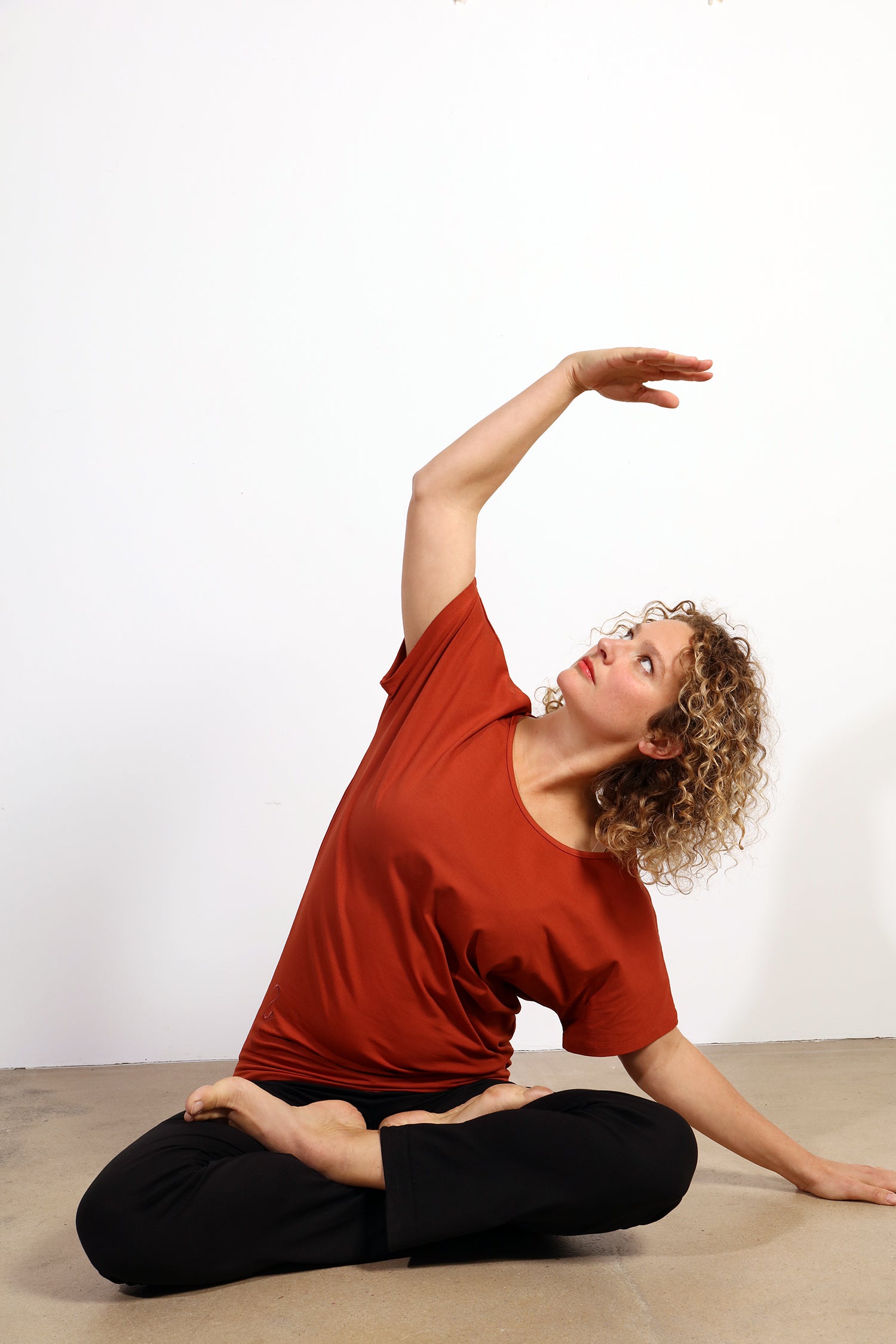 Le coton biologique utilisé est doux pour votre peau et respectueux de la planète. Sa texture légère et respirante assure un confort total, vous permettant de vous concentrer pleinement sur vos activités sans jamais compromettre votre aisance. Que vous soyez en posture du chien tête en bas ou en équilibre sur les mains, ce T-shirt vous offre une liberté de mouvement illimitée.