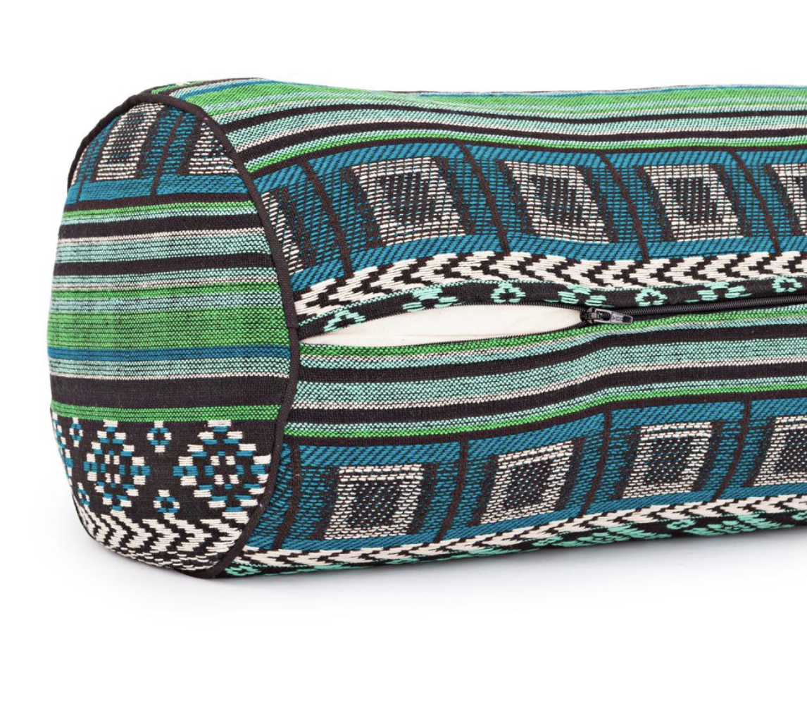 Yoga bolster ETHNO rond motifs jacquard bleu-vert-noir