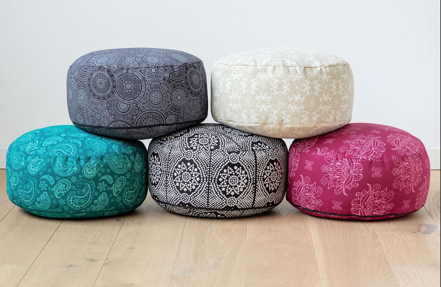 Vous voulez acheter un coussin de méditation coloré ? Notre coussin de yoga Rondo de la collection Maharaja est disponible en cinq designs colorés. Ce coussin de méditation classique offre une élévation pratique de votre assise, très propice à la méditation. Il permet une position assise droite et en même temps détendue et convient parfaitement à la méditation en position du tailleur (Sukhasana), en posture parfaite (Siddhasana) ou en demi-lotus (Ardha Padmasana).