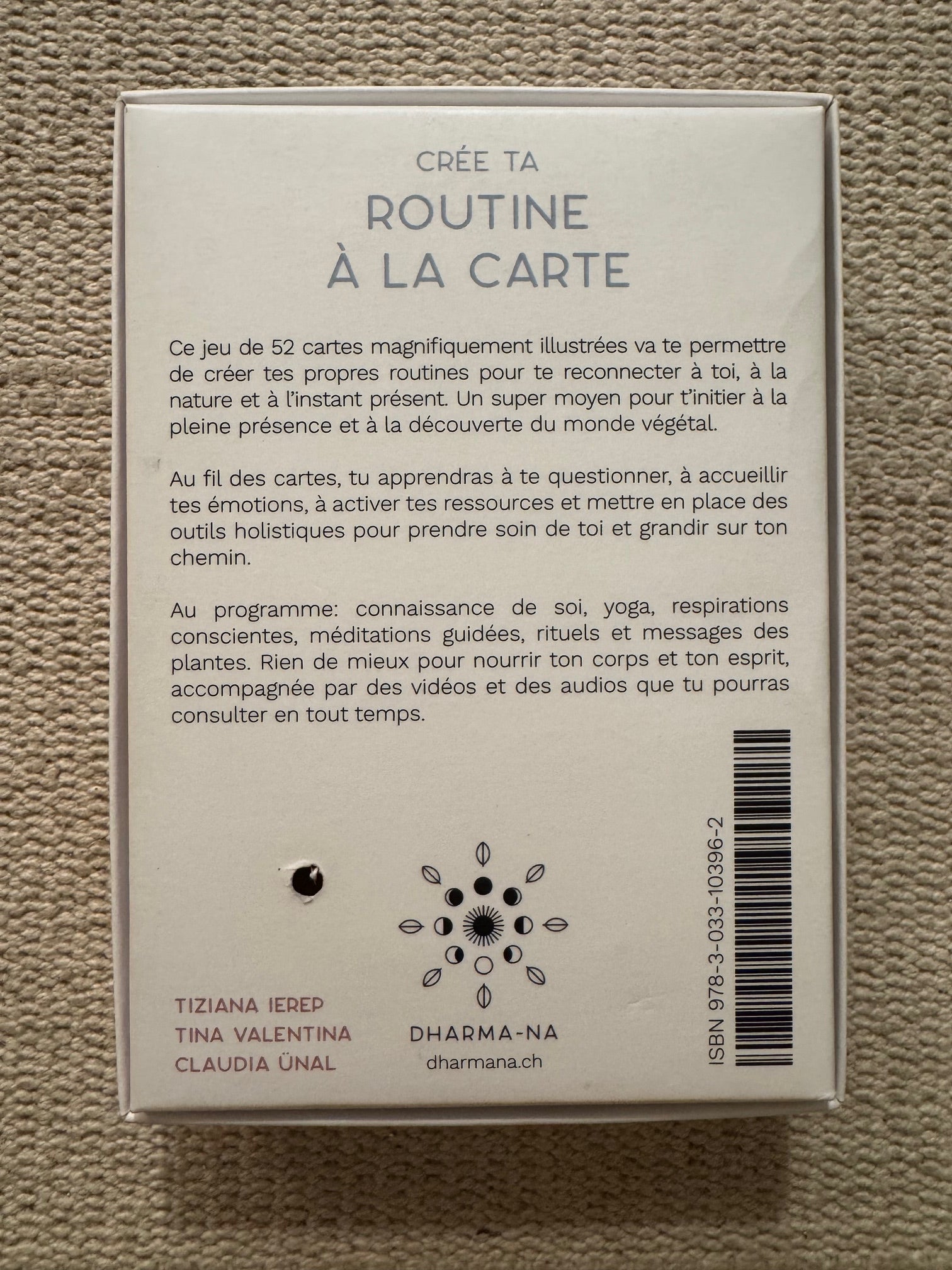 Ce beau jeux - set d'oracle artisanale de 52 cartes, magnifiquement illustrées va te permettre de créer tes propres routines pour te reconnecter à toi, à la nature et à l'instant présent. Un super moyen pour t'initier à la pleine présence et à la découverte du monde végétal.