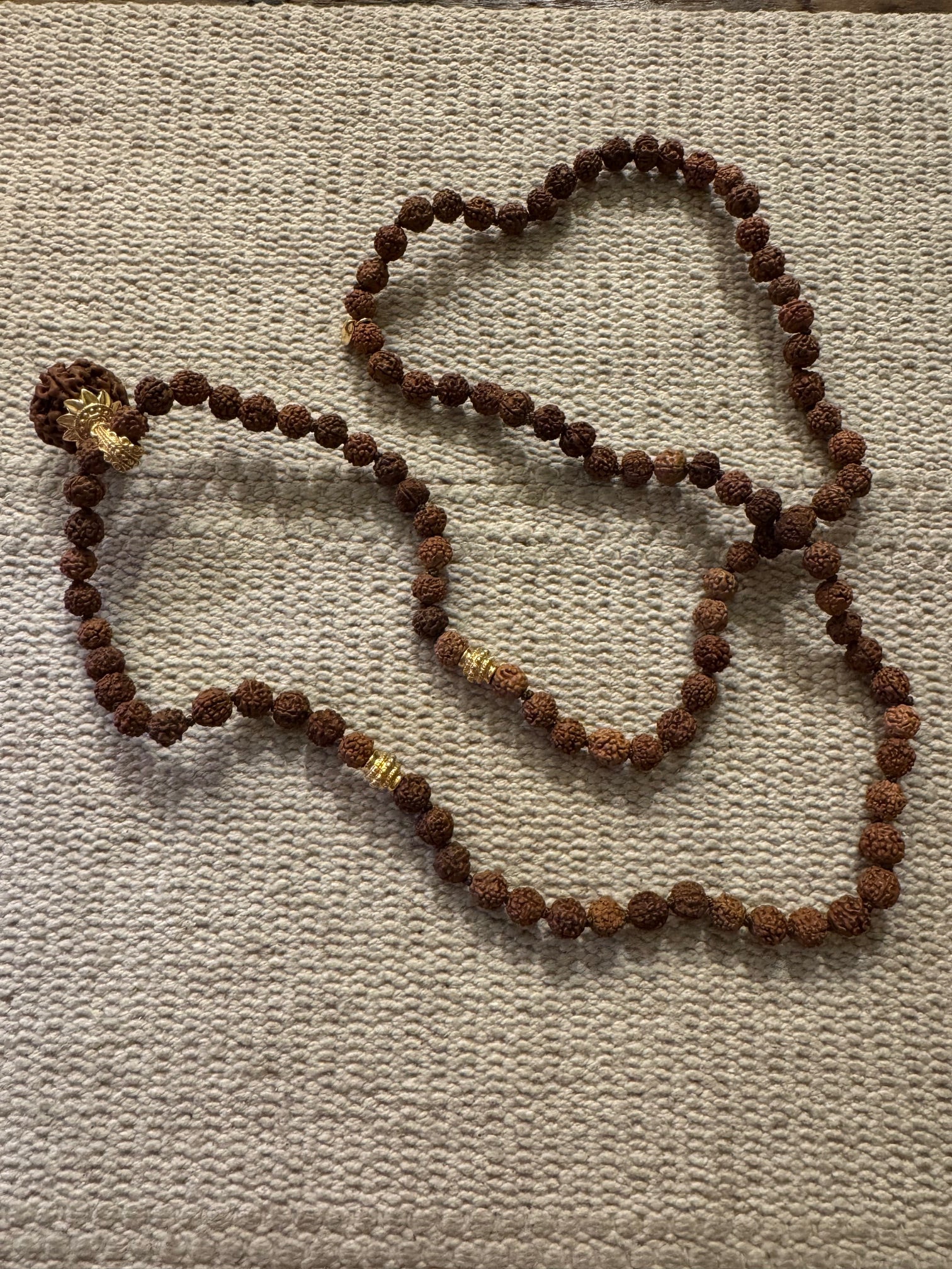 Collier - Mâlâ en perles de Rudraksha - argent plaqué or